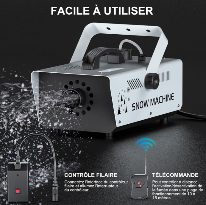 Fonctionnement facile de la télécommande/câble : vous utilisez simplement la télécommande pour pulvériser la neige en continu. Il est plus pratique à utiliser et idéal pour créer des effets visuels passionnants.